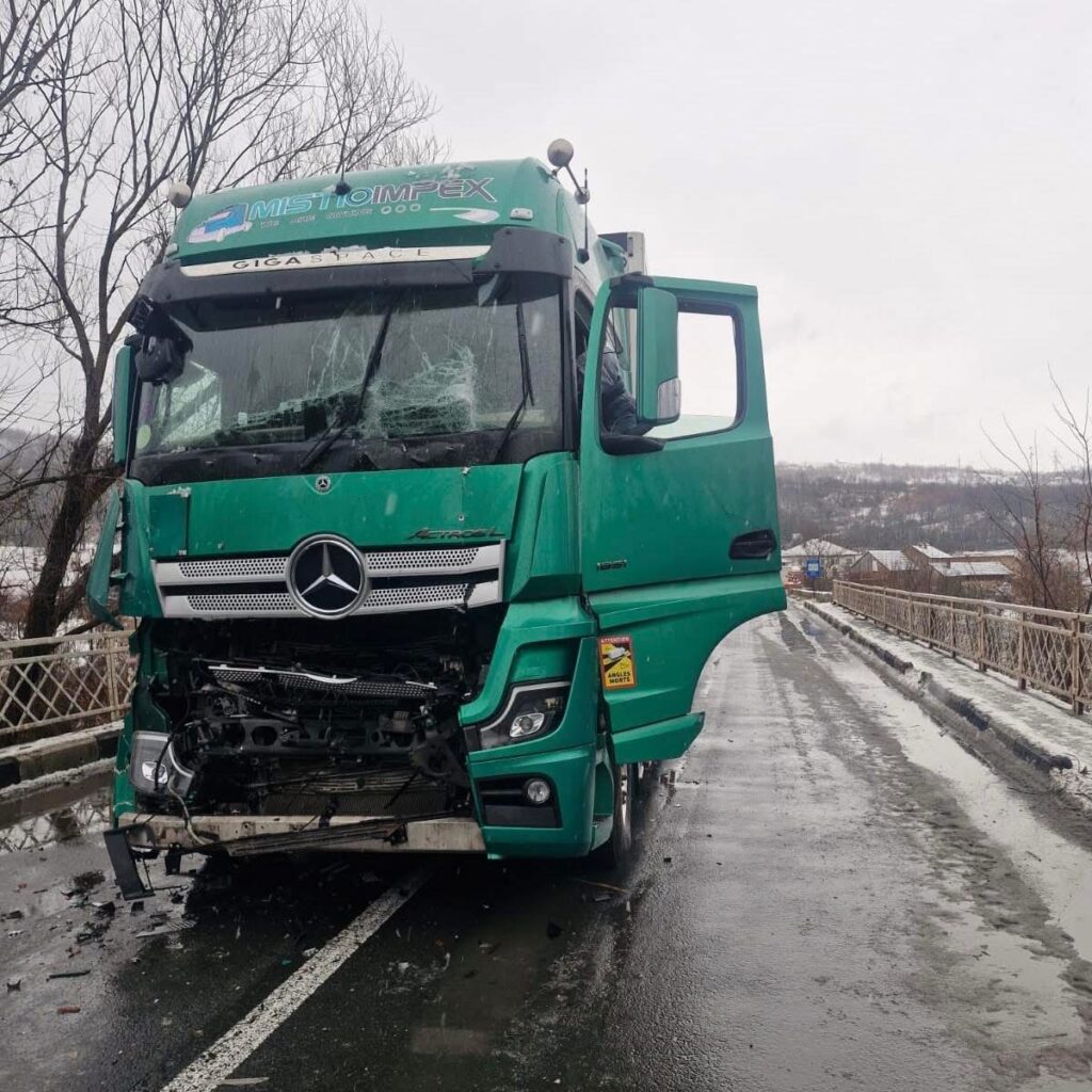 Accident pe DN 6, la Plugova – un autoturism acroșat de un TIR