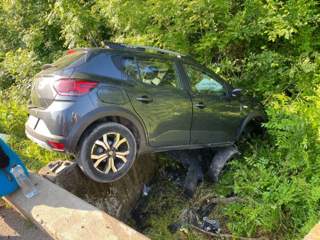 În accident a fost implicat un singur autoturism, care a părăsit partea carosabilă.