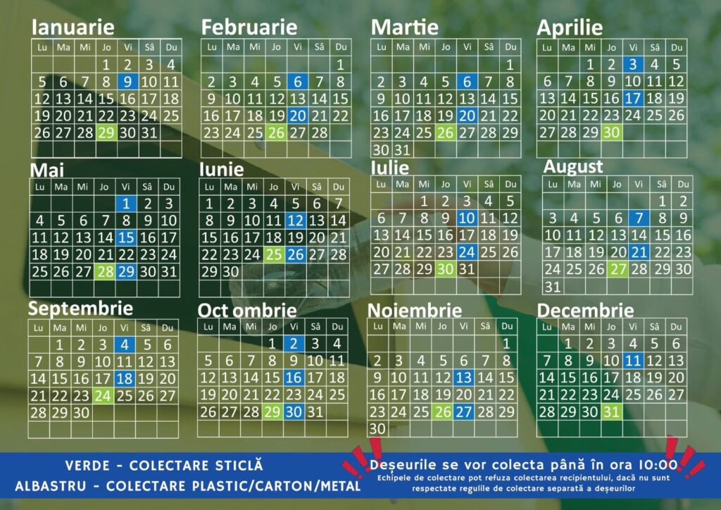 Autoritățile reamintesc că acest calendar este valabil doar pentru locuințele individuale, iar respectarea lui reprezintă un mic gest cu impact major asupra curățeniei orașului.
