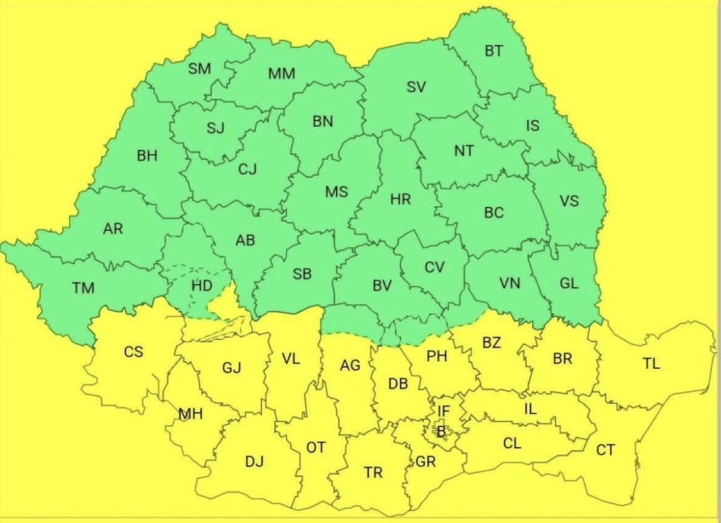 Administrația Națională de Meteorologie (ANM) a emis un cod galben de ninsori, viscol, polei și răcire accentuată a vremii, valabil în intervalul 24 decembrie, ora 12:00 – 25 decembrie, ora 20:00.