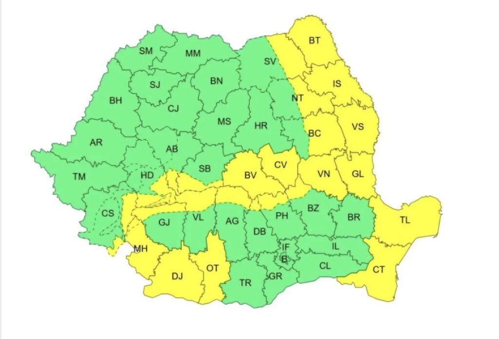 Administrația Națională de Meteorologie (ANM) a emis luni o avertizare Cod galben de vânt pentru 25 de județe din țară. Potrivit meteorologilor, rafalele vor atinge viteze de până la 120 km/h în zonele montane înalte.