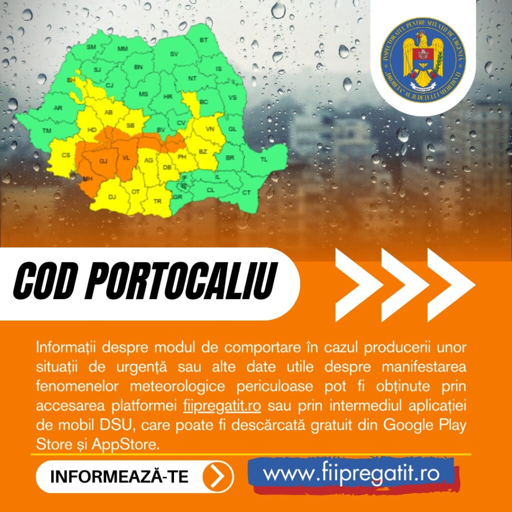 Începând de mâine, 28 martie, ora 10:00, județul Mehedinți se va afla sub avertizare meteorologică Cod Portocaliu ce vizează precipitații abundente, valabilă până sâmbătă, 29 martie, ora 12:00, conform informării transmise de către Administraţia Naţională de Meteorologie.