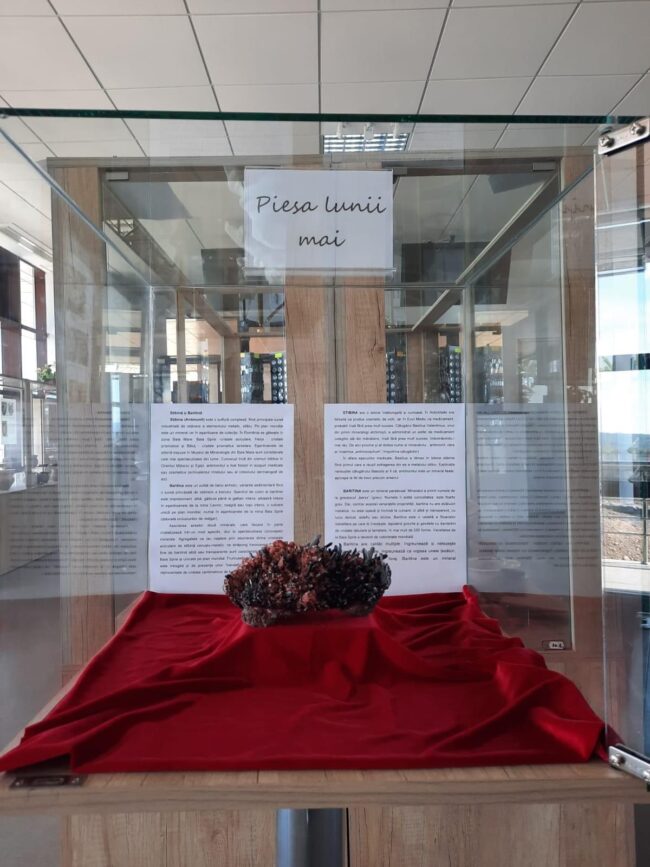 Piesa lunii mai, expusă la Muzeul Regiunii Porților de Fier din Drobeta Turnu Severin este “Stibină și Baritină”.