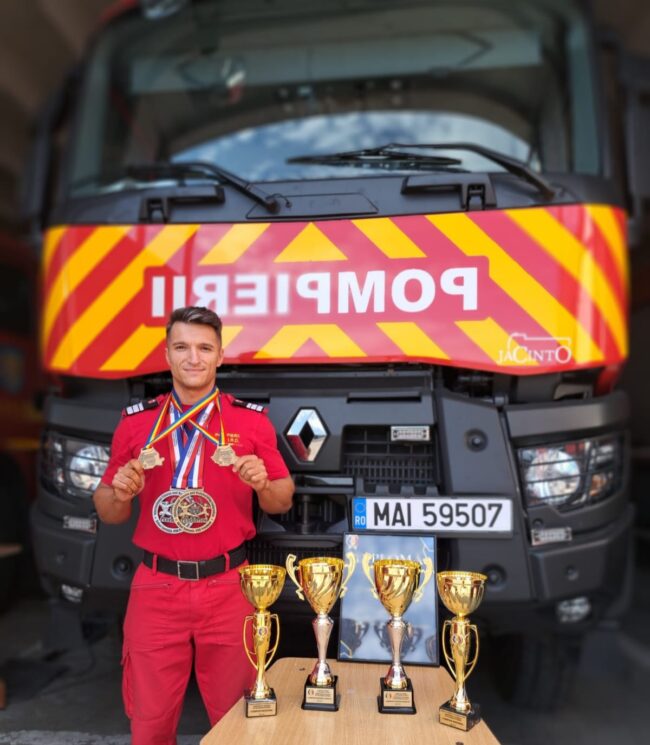 Reamintim faptul că, pompierul a obținut numeroase medalii și titluri, fiind vicecampion european, campion balcanic absolut și multiplu campion național, reușind să obțină în anul 2019 medalia de bronz la Campionatul Mondial de Culturism și Fitness.