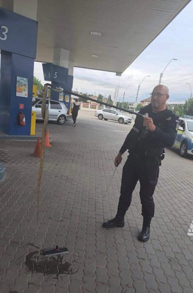 Un echipaj al Jandarmeriei Mehedinți a fost direcționat ieri, către stația peco situată pe Calea Timișoarei din Drobeta Turnu Severin, după ce a fost sesizată prezența unui șarpe. Aceștia au observat un șarpe încolăcit printre cablurile de alimentare ale unei pompe de benzină, motiv pentru care s-a solicitat sprijinul echipajului de intervenție pentru îndepărtarea acestuia. La adresa indicată, jandarmii au ridicat un șarpe în lungime de peste 150 cm, pe care l-au eliberat, ulterior, în mediul său natural.