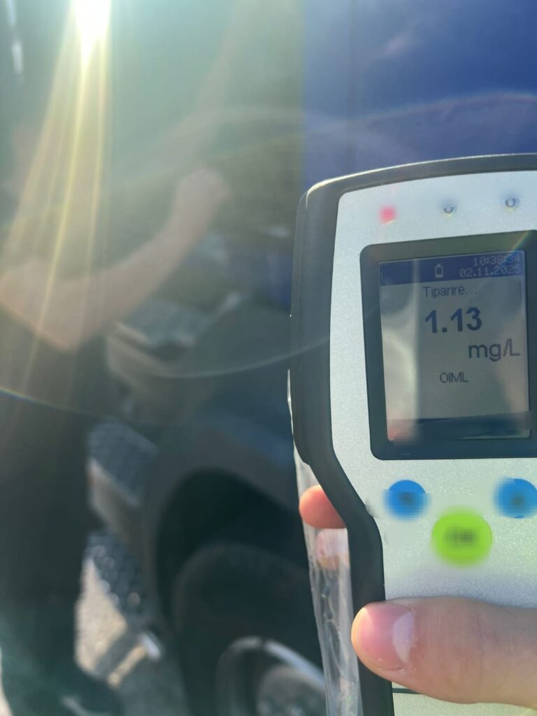 Alcooltestul a indicat 1,13 mg/l alcool în aerul expirat, iar șoferul a fost transportat la spital pentru recoltarea de mostre biologice, necesare stabilirii alcoolemiei.