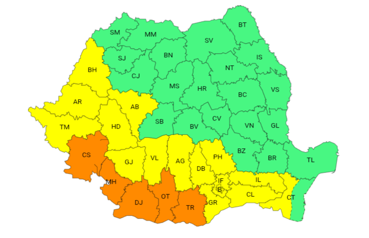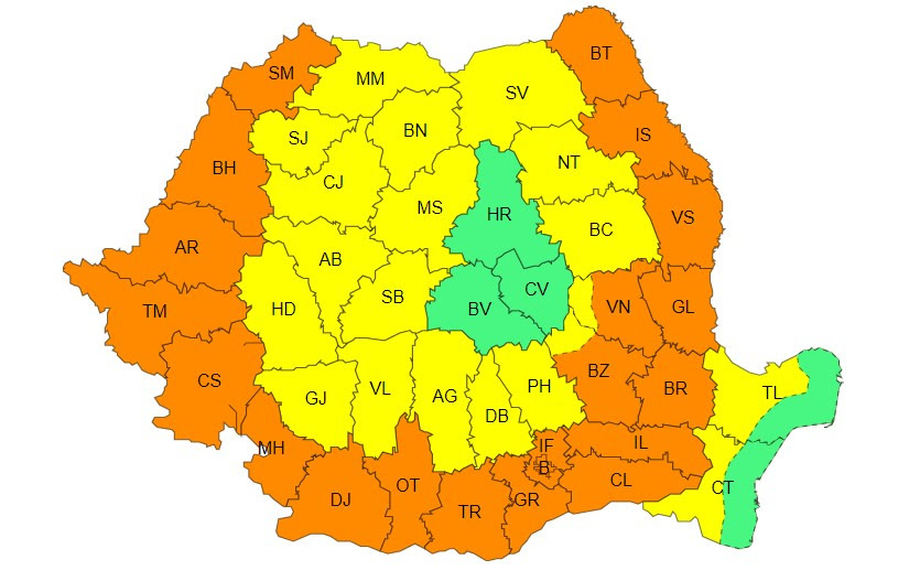 Meteorologii au emis avertizări cod galben și portocaliu, valabile pentru [...]