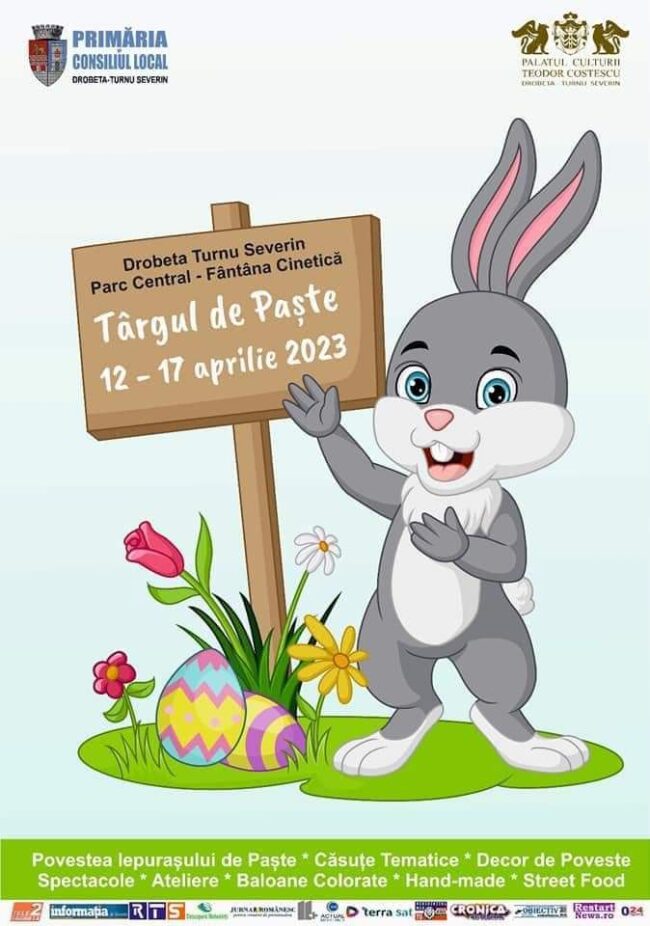 Pregătirile pentru deschiderea Târgului de Paște de la Drobeta-Turnu Severin sunt pe ultima sută de metri, iar de mâine, 12 aprilie își va deschide porțile cu activități pentru toți severinenii, în special pentru copii. În primele două zile ale târgului, primăria Severinului și Palatul Culturii au pus la punct o serie de spectacole dedicate celor mici. De la personaje de poveste, ateliere de creație, până la concursuri cu tematică de Paște, toate acestea le vor asigura atât copiilor cât și părinților, două zile pline, în zona centrală a municipiului. Târgul va rămâne deschis până pe 17 aprilie.